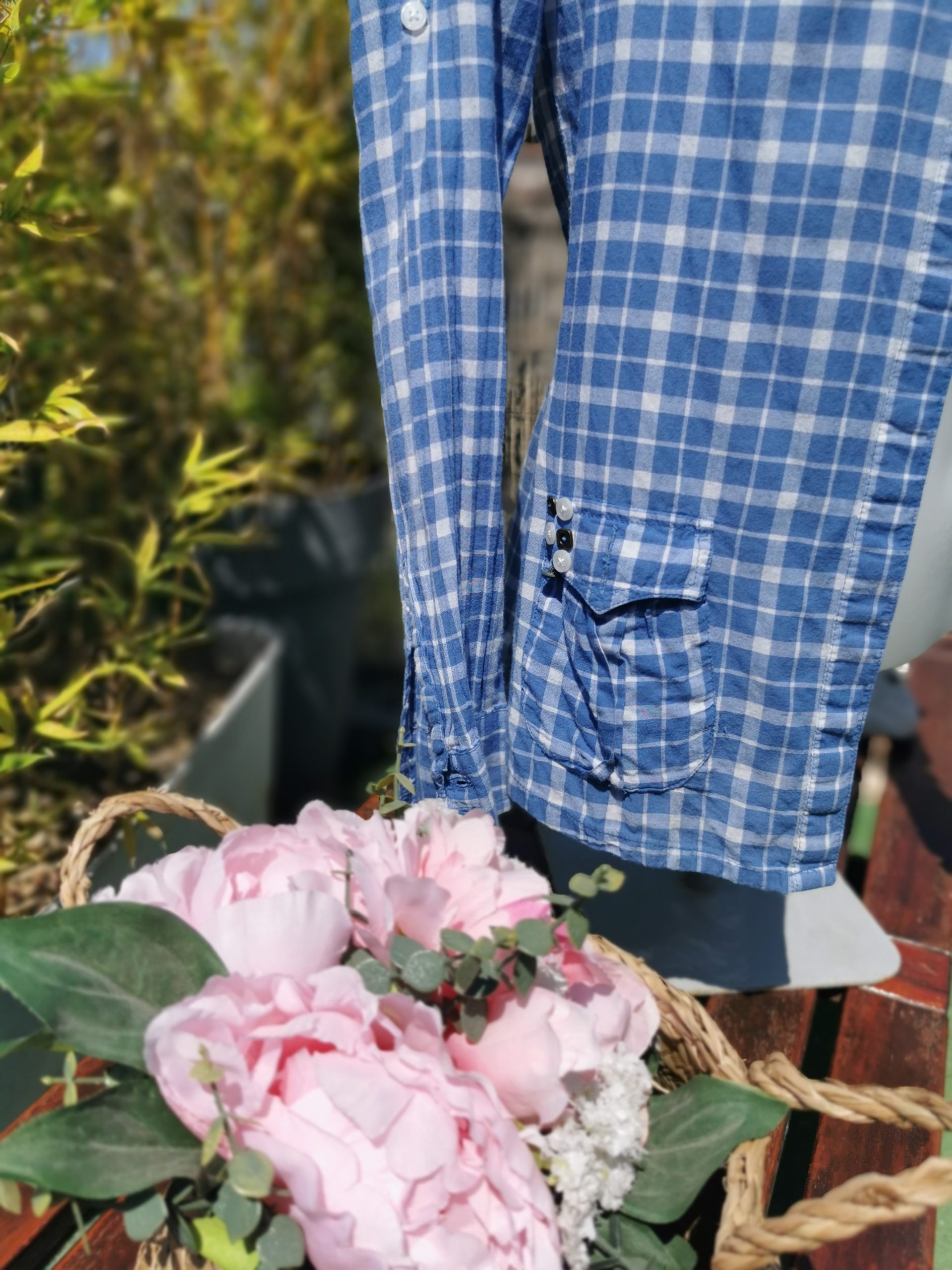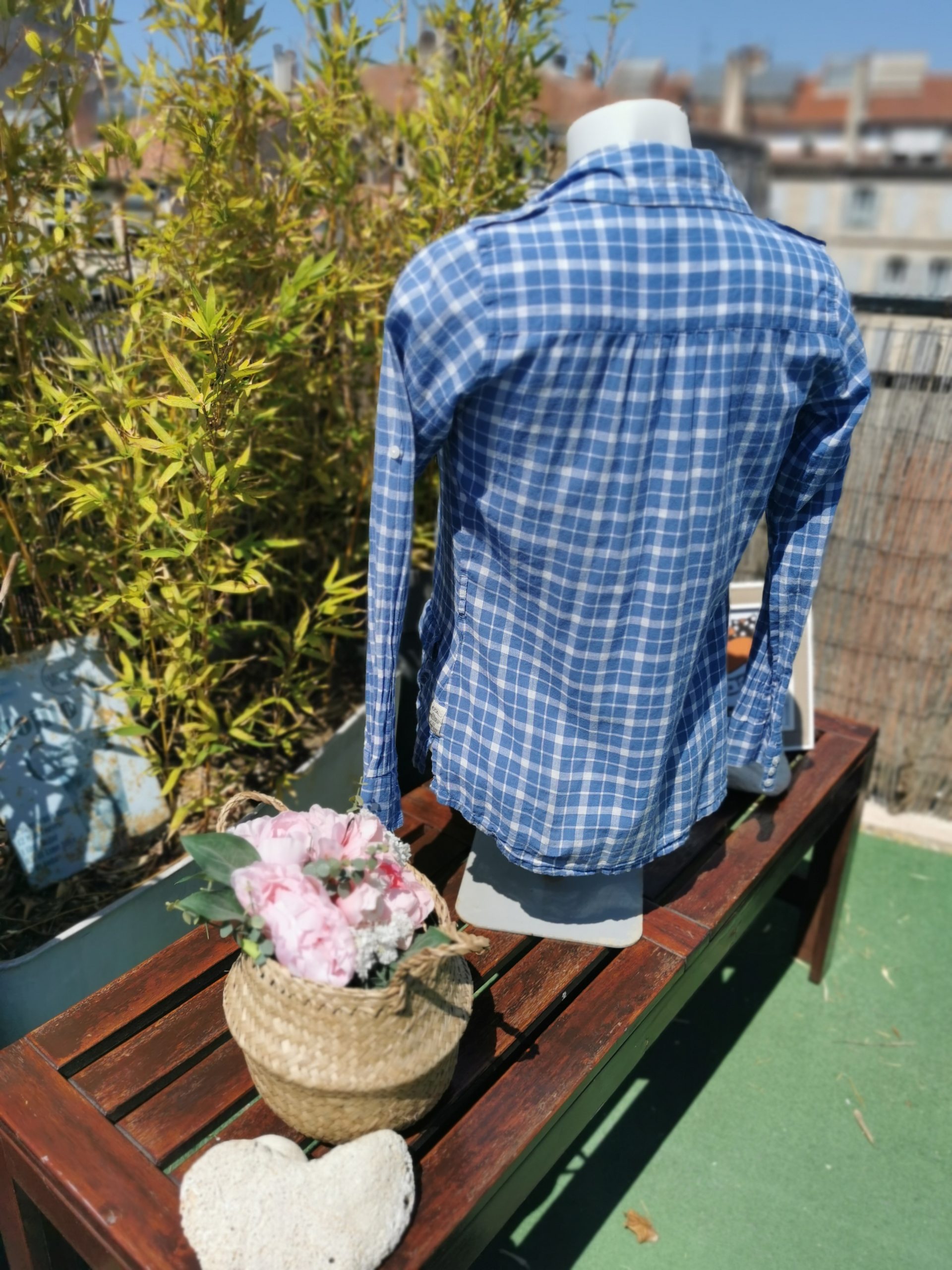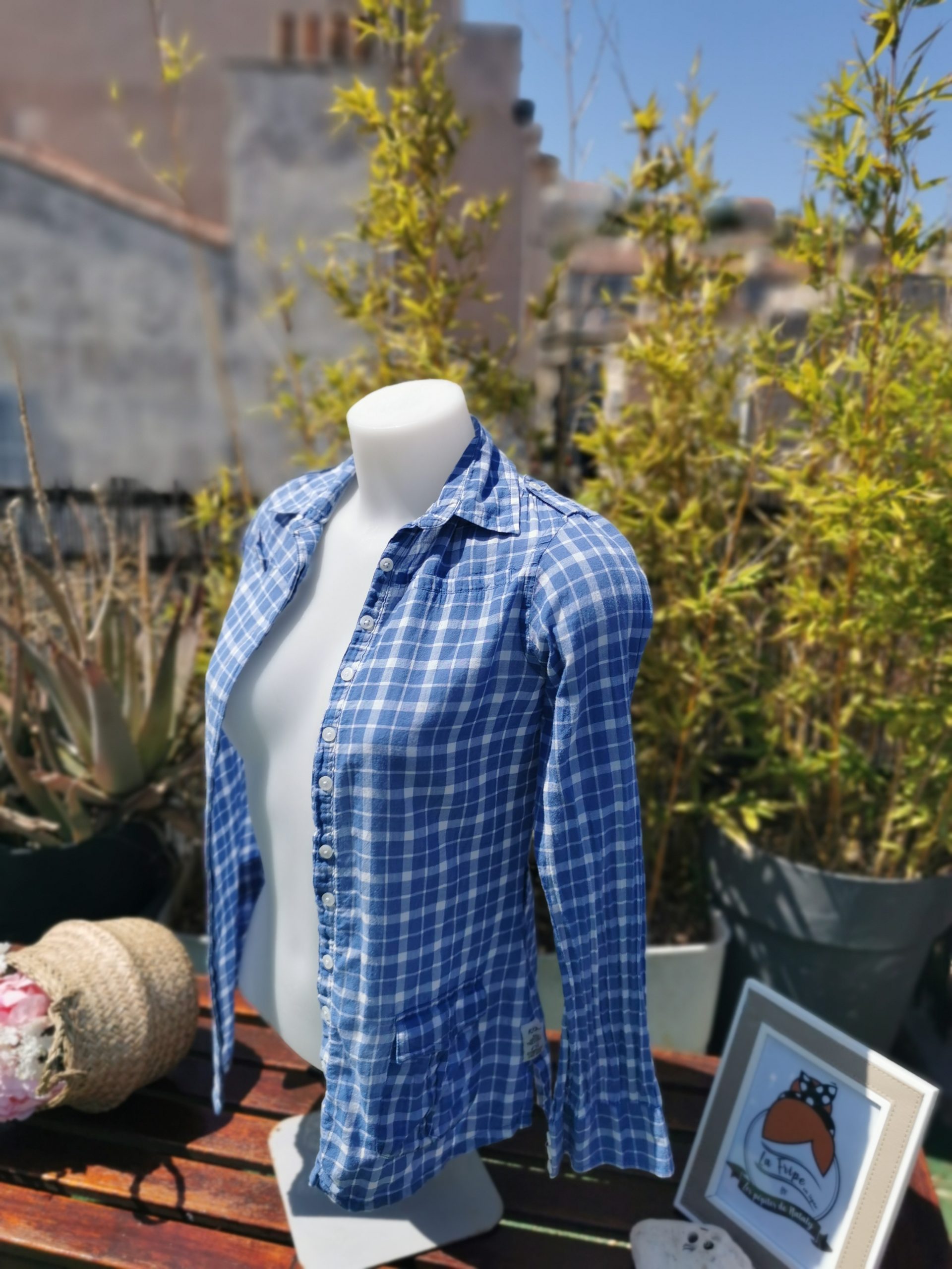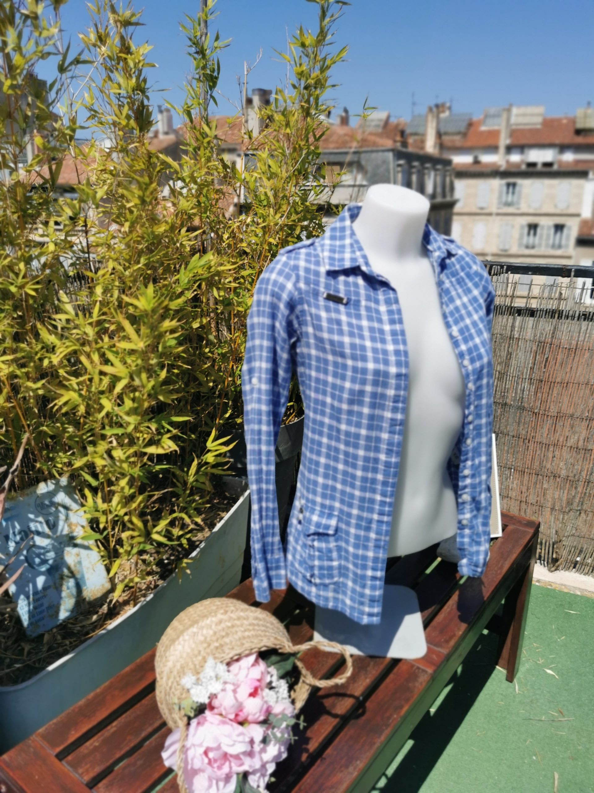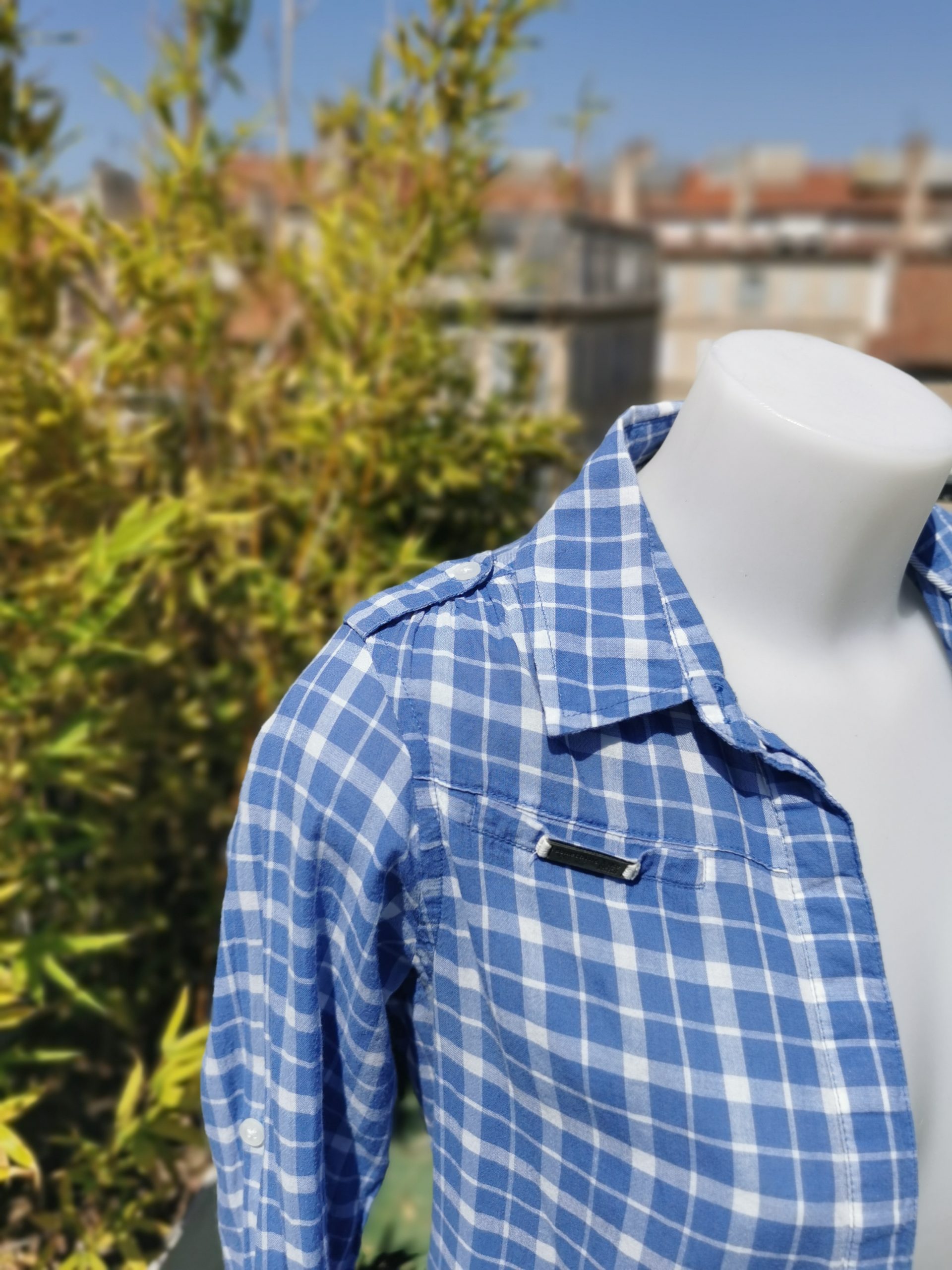 Chemise à carreaux bleu et blanche