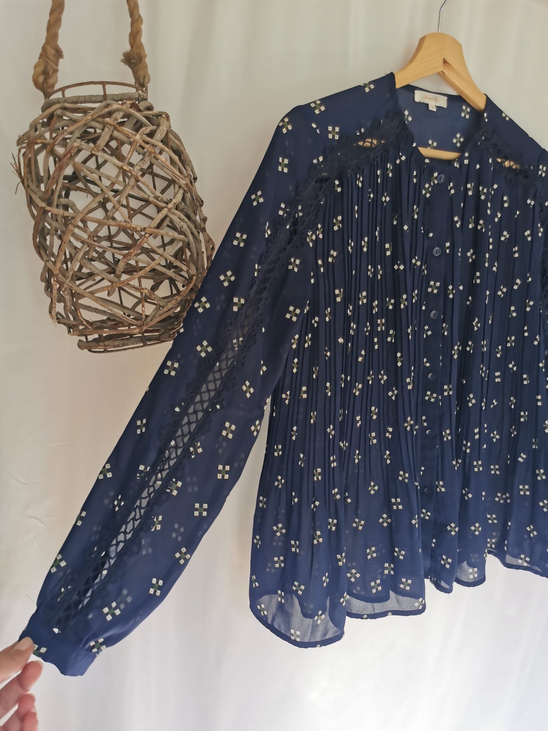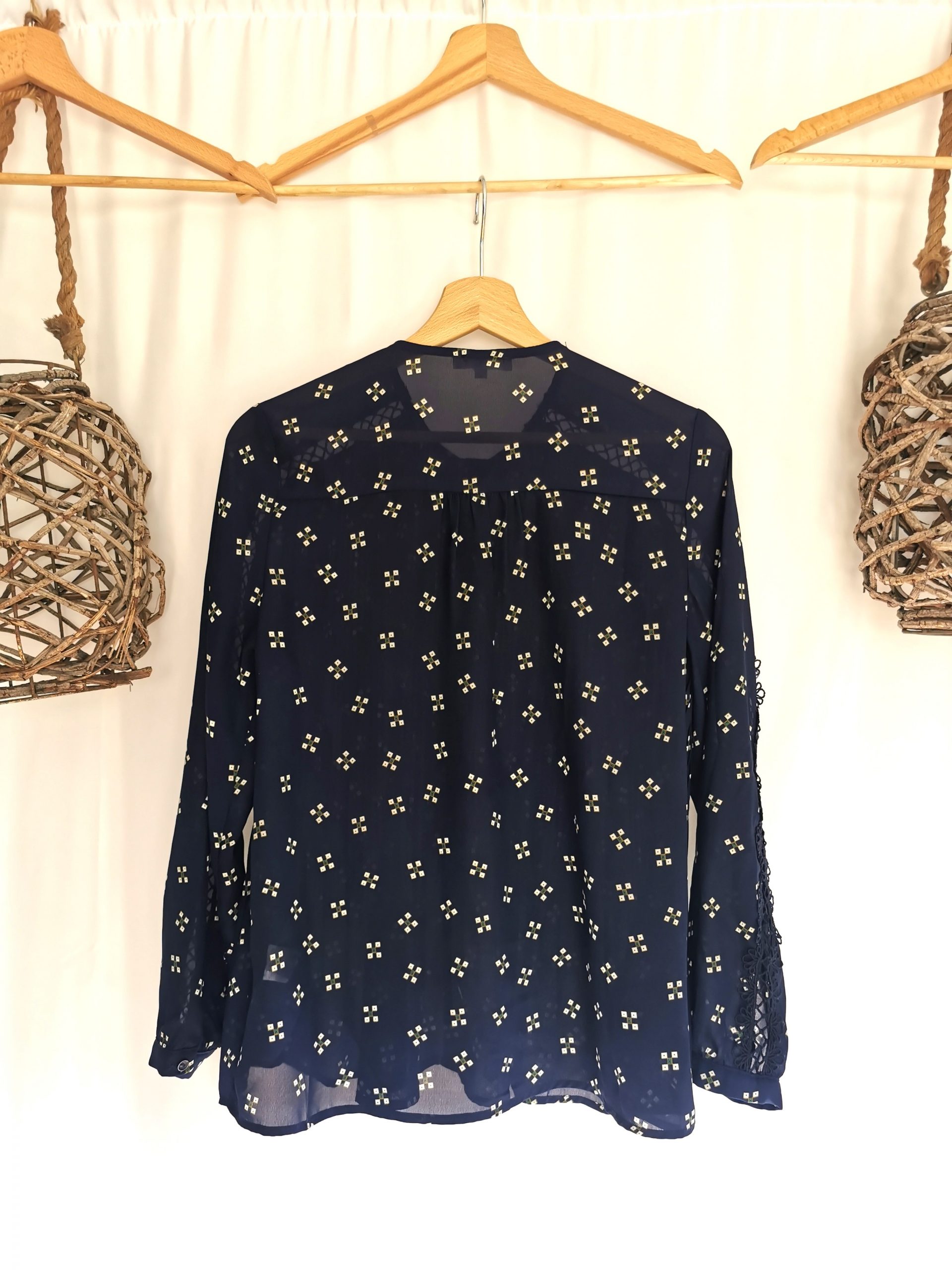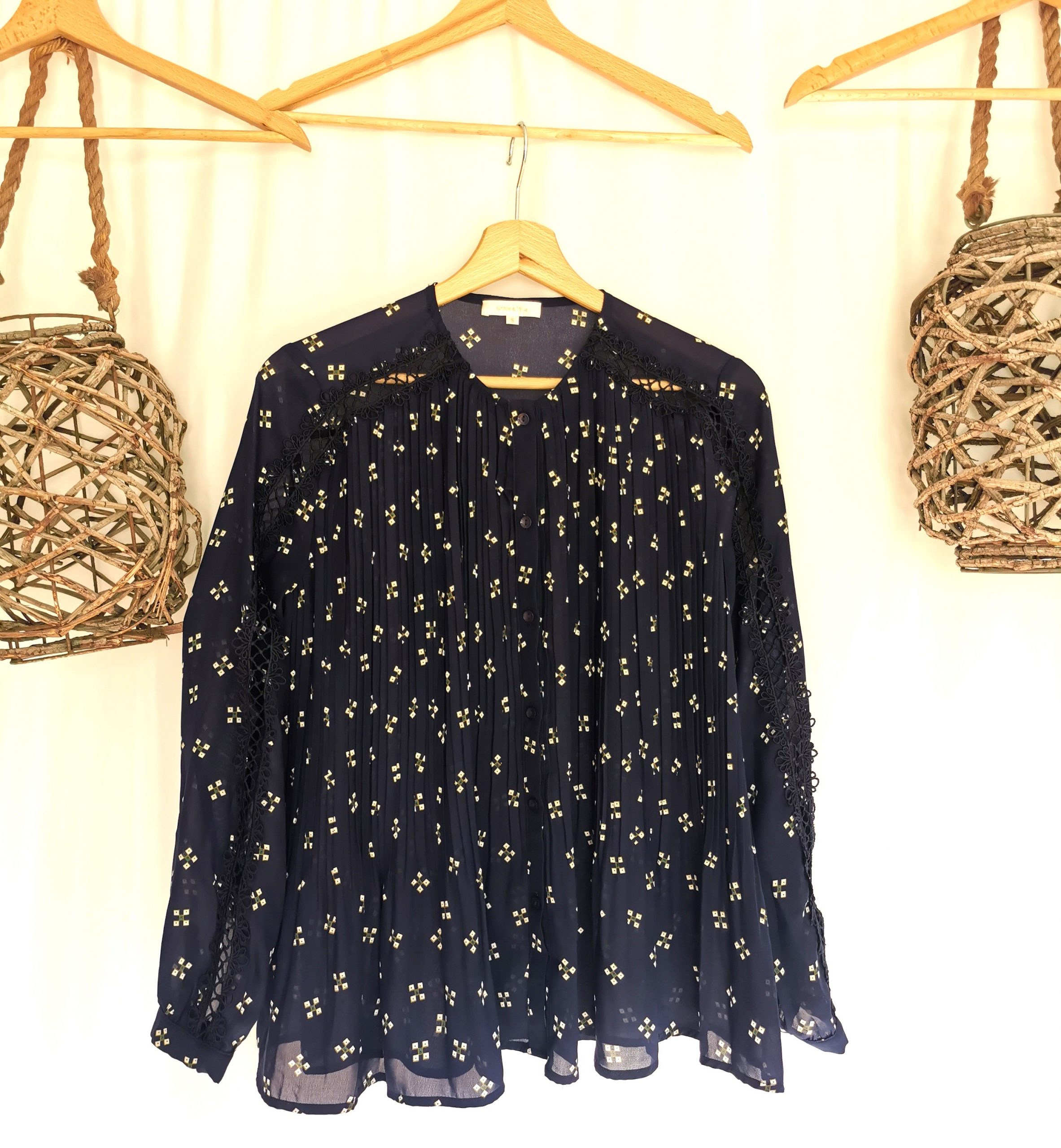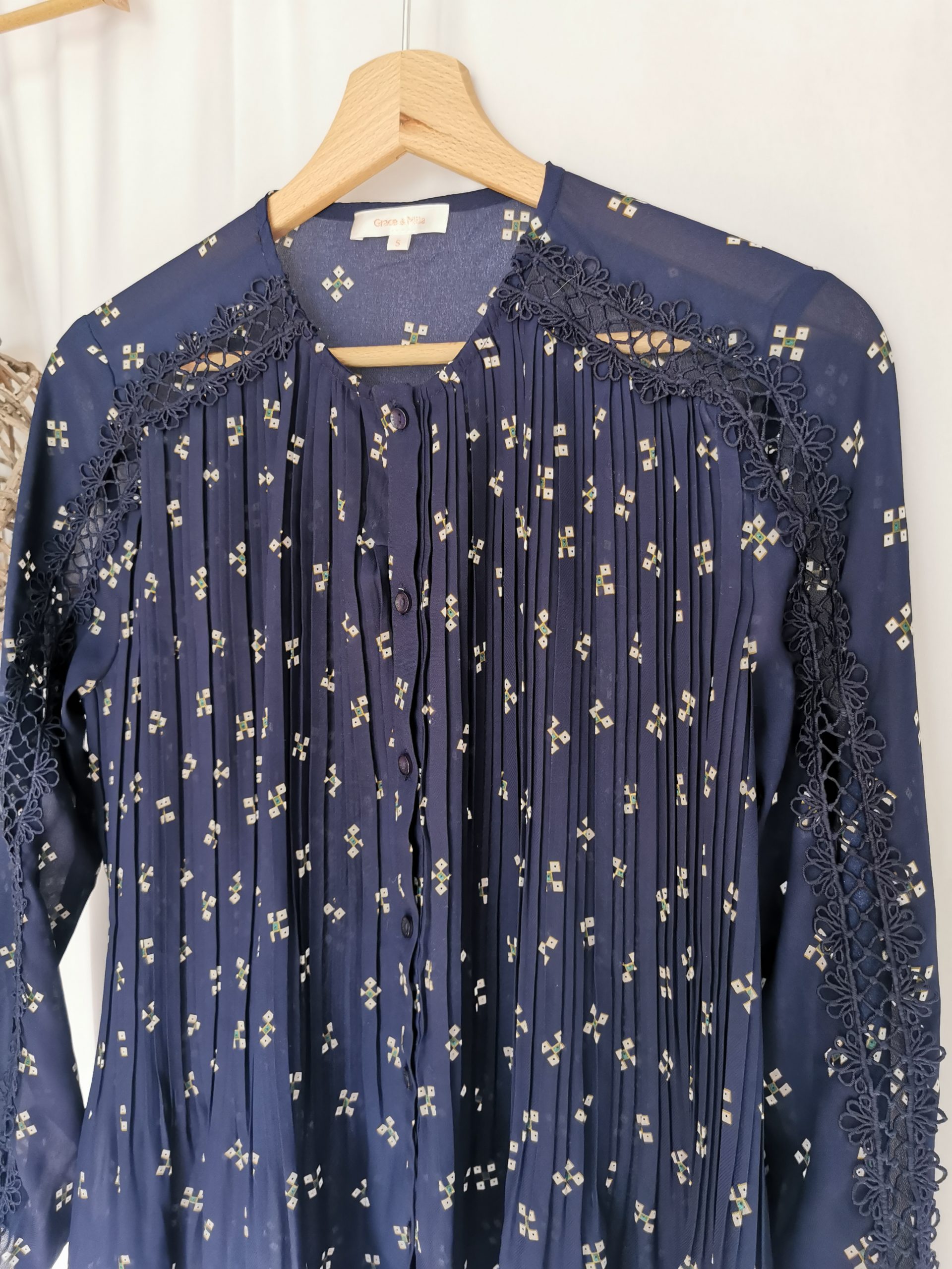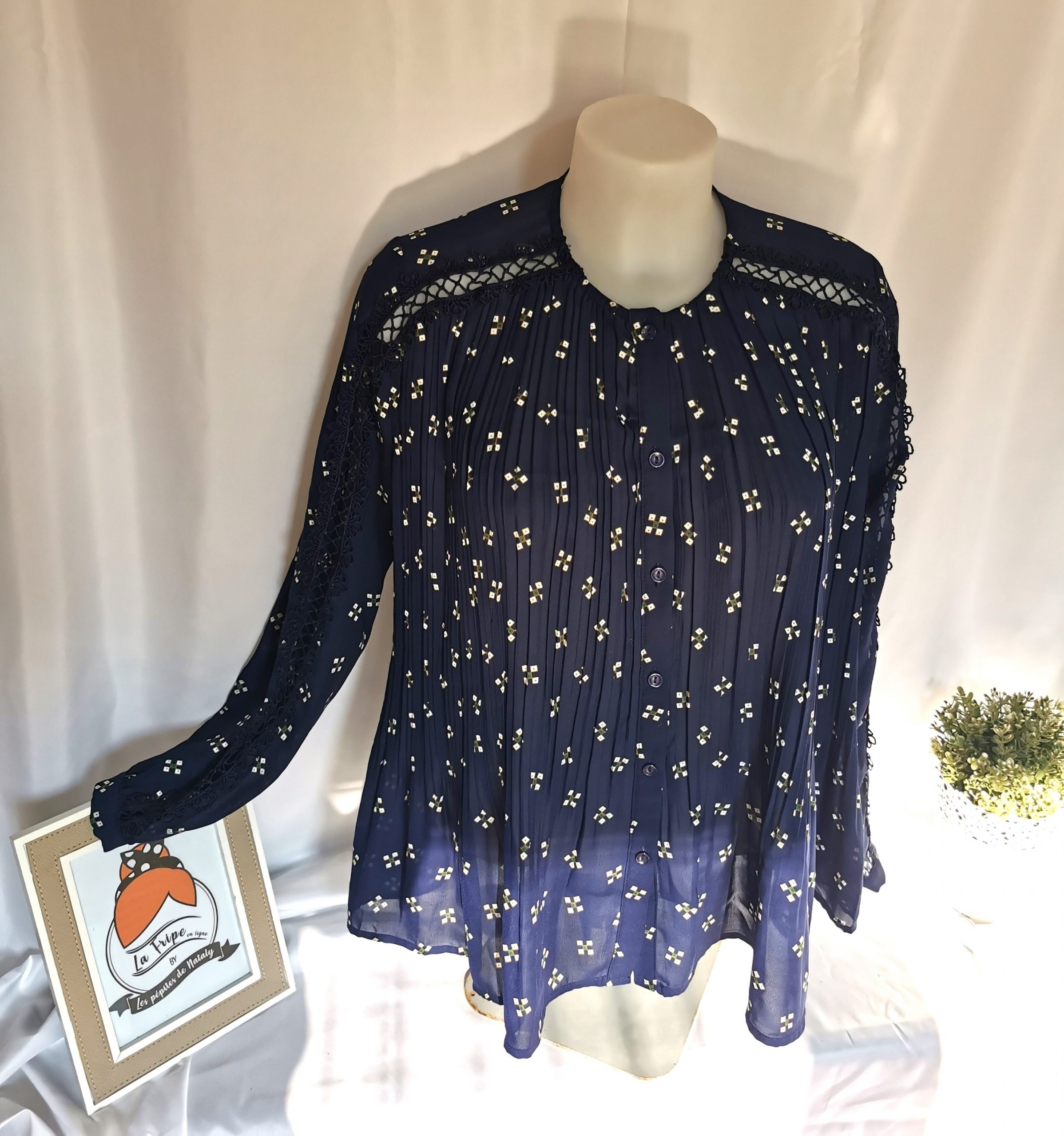 Chemise plissée bleu marine motifs et transparence