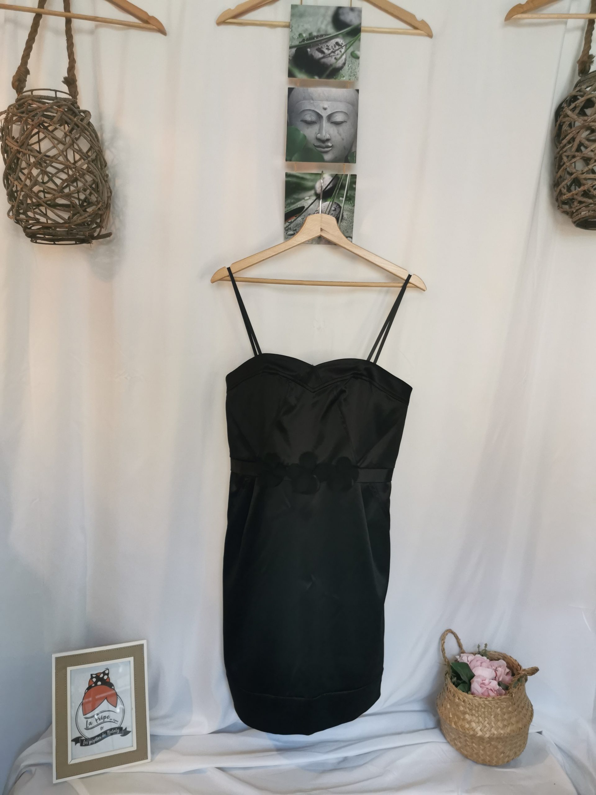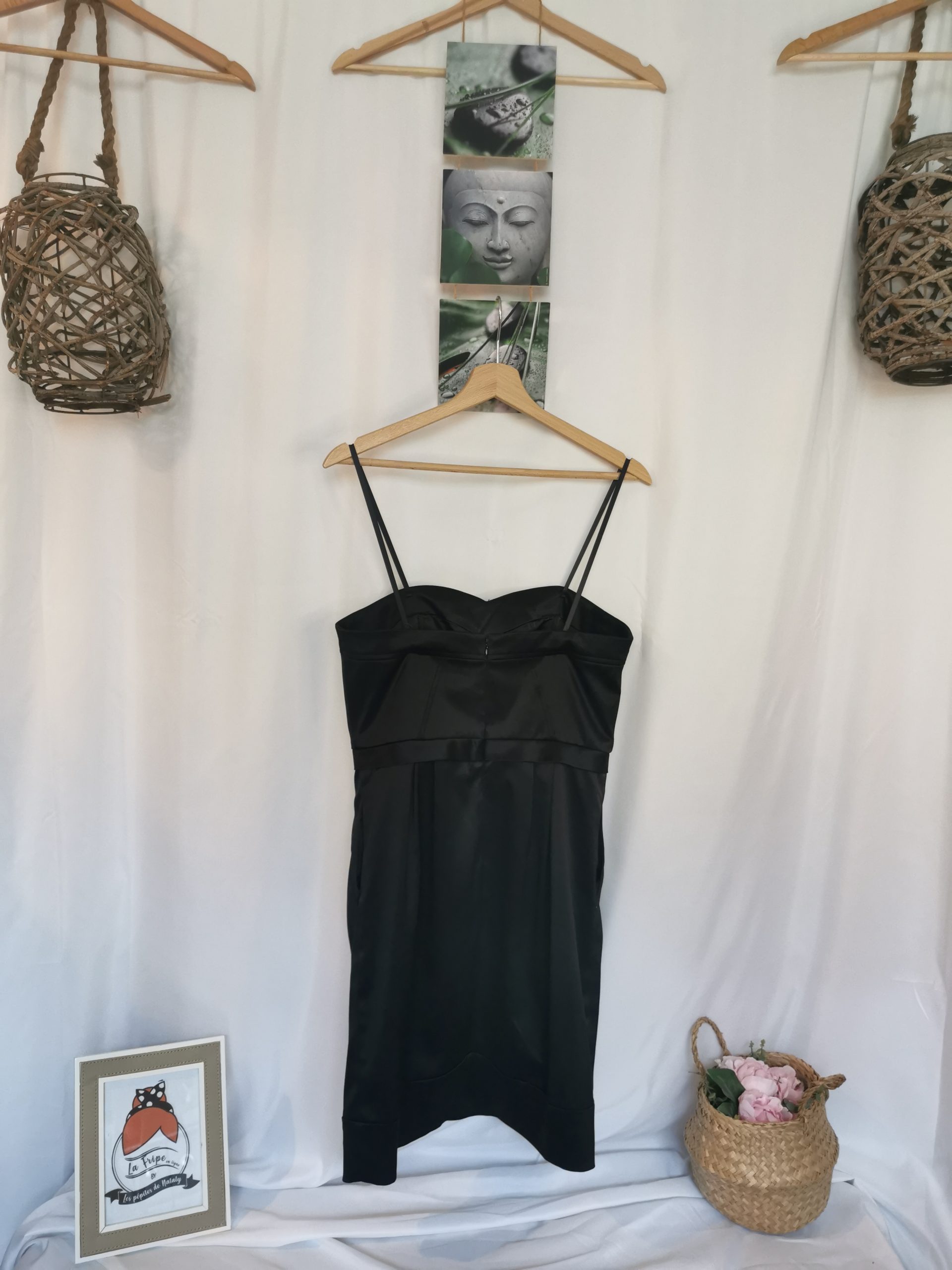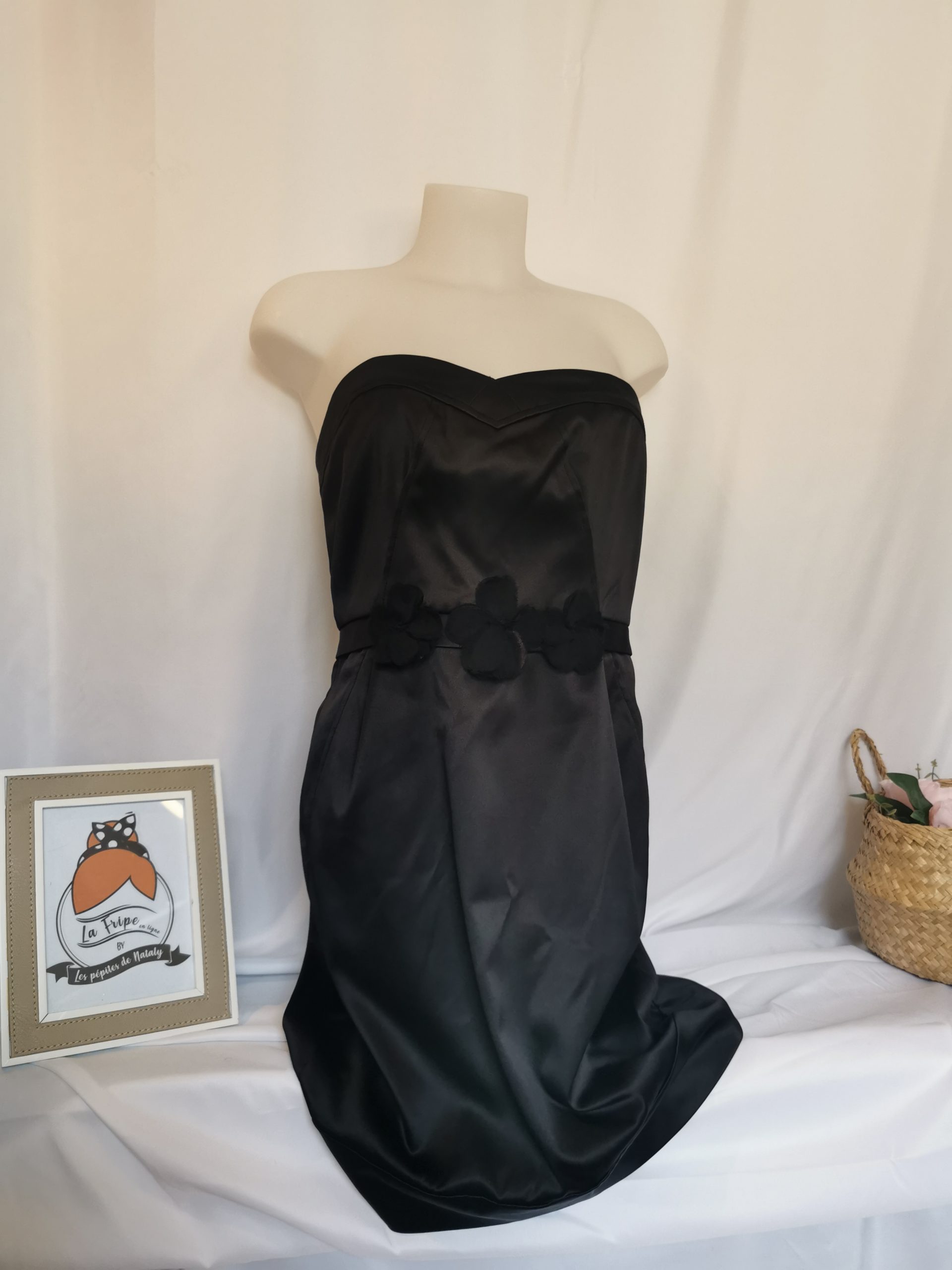 Robe noire bustier satinée