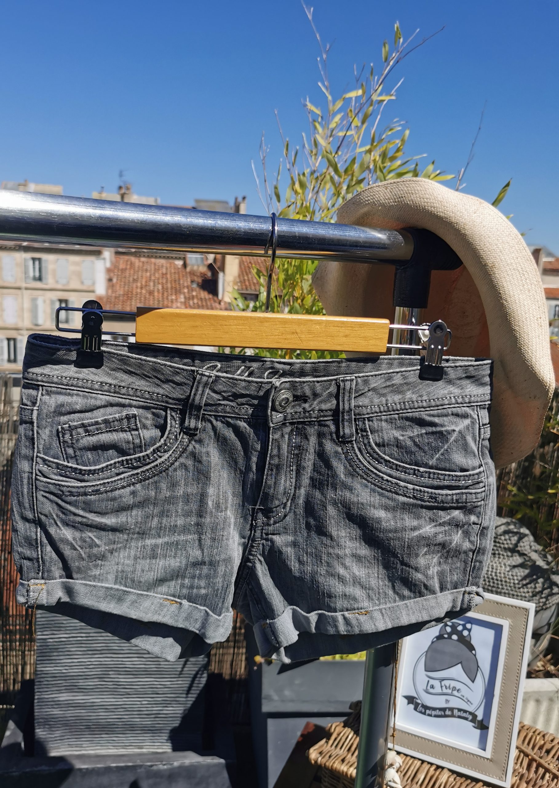 Short en jean noir délavé